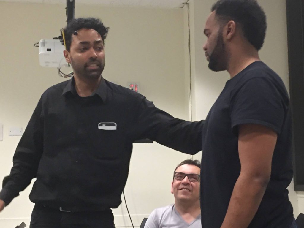 A partir de ese concepto, los actores realizan un intenso trabajo físico para crear los diferentes ámbitos y tiempos por los que los personajes transitan. El elenco lo integranFabián González-quien fue merecedor de un premio ATI- y el joven intérprete Miguel Flores.Ellos desarrollan una propuesta despojada y neurótica en la que los actoresgeneran energía y teatralidad.